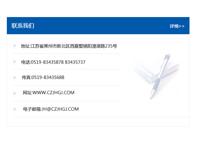地址:常州市新北區友邦商務大廈1幢16、17層  電話:0519-85101652  傳真:0519-85112595  郵編:213022  網址:www_cz-jiayue_cn.cn-shentong.com  郵箱:xiajifengaa@163.com